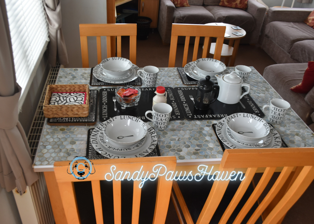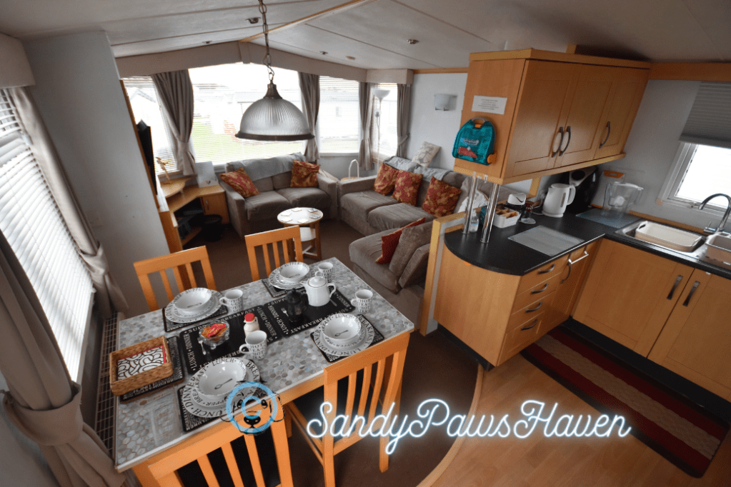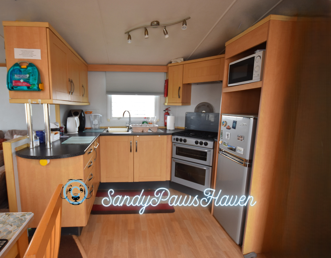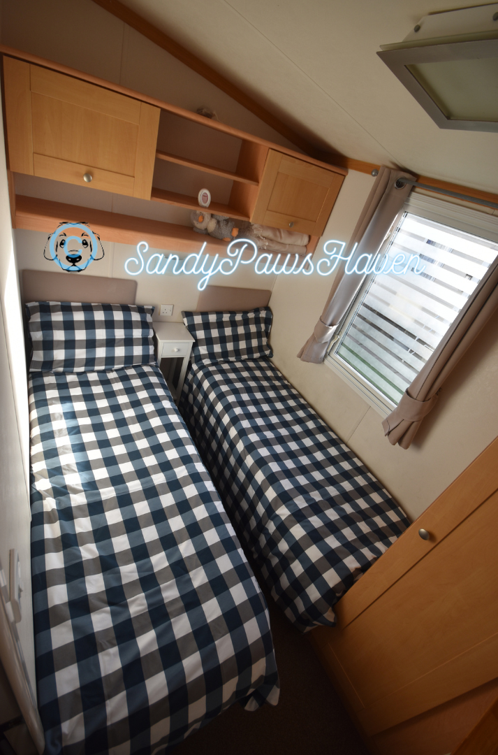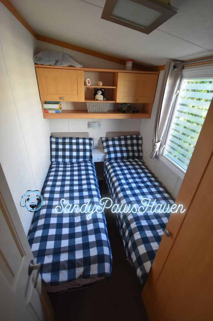 The lounge has ample space for your family, and it provides free-standing furniture (including a sofa bed), an electric fire, a flat-screen TV with an integrated DVD Player and Freeview, a floor lamp, and a Coffee table.